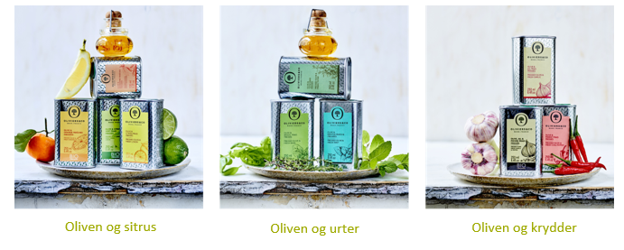 For å få disse unike oljene velger vi nøye ut ferske ingredienser. Alt fra aromatiske planter, krydder eller sitrusfrukter males samtidig med oliven, hvor ingen smakstilsetninger tilsettes.