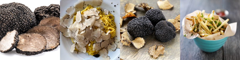 Sort trøffelolje: sort trøffel har en kraftig aroma og smak og kan sies å bringe en mer markant smak av trøffel og sopp til matrettene.