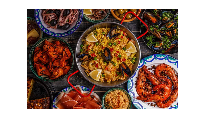 Det er mange kulinariske spesialiteter i hver region i Spania. Olivenolje er stjerneingrediensen, iberisk skinke en nasjonal stolthet, det er også den berømte paella! Gazpacho (oppskrift her), blekksprut med tomat, hvitløk eller pepper, tortillaen eller de mange rettene basert på fisk og skalldyr. Ved aperitiff er tapas også en utmerket snacks til spanske viner! Du vil ofte finne olivenolje til rettene. Olivenolje er en meget verdsatt matvare i Spania.