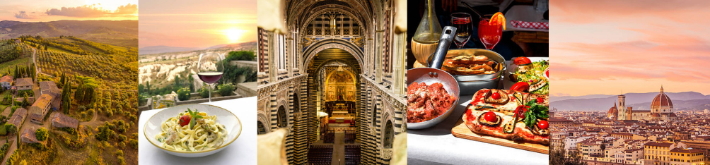 La Dolce Vita finner du i hjertet av Toscana. Mellom folkelivet i hovedstaden Firenze, renessansens vugge og et paradis for kunstelskere, og den fredelige atmosfæren i det milde landskapet med sine grønne åser, vingårder og gamle steinslott. Dette lille landområdet på knapt 22 000 km2 skjuler like mange skatter som mange land tilsammen rundt om i verden.